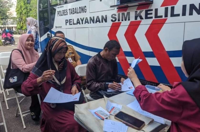 Warga memanfaatkan layanan SIM keliling pada HUT Bhayangkara ke 79 di Pendopo Bersinar, Tabalong (foto/doc)