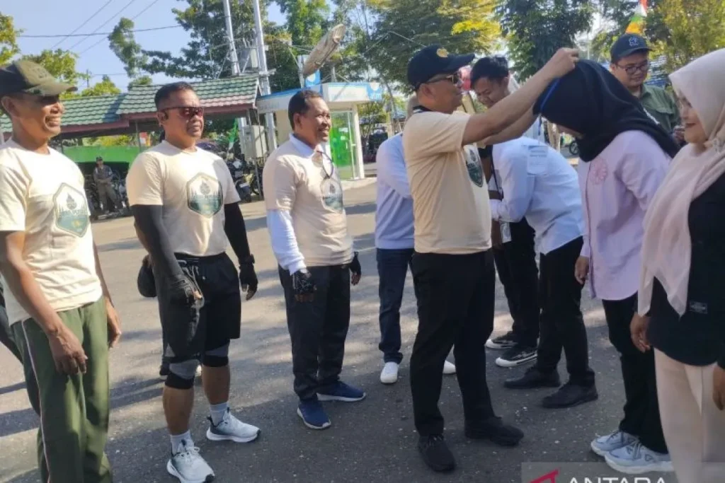 Launching pelatihan keterampilan di Kecamatan Banua Lawas ditandai pengalungan tanda peserta oleh Bupati Tabalong H Muhammad Noor Rifani